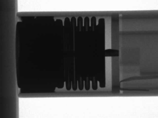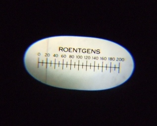 I had to X-ray some stuff for work today and since I was qualifying one of my V-742 dosimeters and had never seen the insides of one I stuck it in the X-ray machine. It was pretty cool to see the ion chamber, the meter needle and how they sealed both ends so well that they last 45 years.