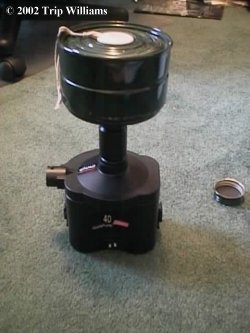 Our second test was with the Wal-mart air bed inflator with a NATO standard NBC filter attached. After about 2 minutes the plastic began to buldge outwards in the doorway.. after 15 minutes, the altimiter began to show a rise in pressure.. This was effective.