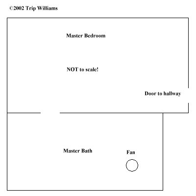 The air heat vents were sealed with plastic, as was the Bathroom vent fan and doorway. We will normally have this door closed, but wanted it open for this test as a visual aid...