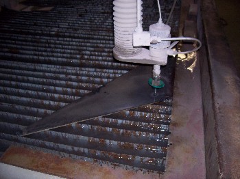 Me being me, I drastically cheated when it came to making the components. I threw some scrap on the water jet and started cutting. Each piece cut in less than two minutes. It sure did make short work of cutting the steel especially when having to cut a 45 degree notch in the end of a piece of steel so that it would fit on a piece of angle iron.