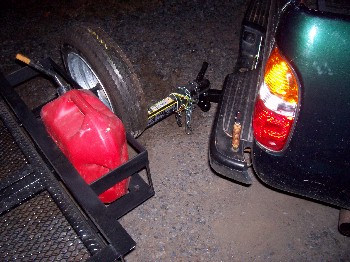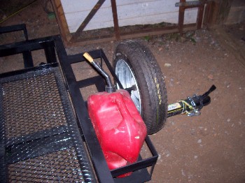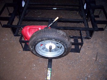 I recently picked up a brand new 4x6 tilt bed trailer for a very good price. I also bought a spare tire, but not a carrier for it. I wanted to be able to haul 4 gas jugs without losing any deck space. After doing some measuring I decided I could put 1 jug on each side forward of the fender and 2 jugs on the front.