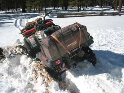 An ATV is just like a four wheel drive vehicle right, it can’t get stuck. Wrong! You should always carry the gear to get yourself unstuck in whatever vehicle you are in. Remember the Boy Scout Motto, “Be prepared.” I always carry all the gear that I think I might need. Remember that your “knowledge and experience” is the most important thing you can have.