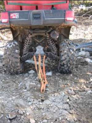 Make sure you have a suitable attachment point to the ATV. Here I used webbing.