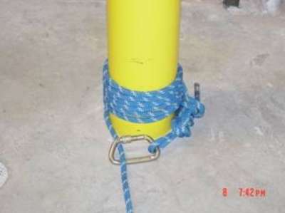 If you have no carabiner, you can tie a figure eight on a bight around the rope.