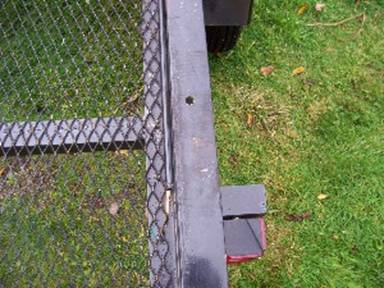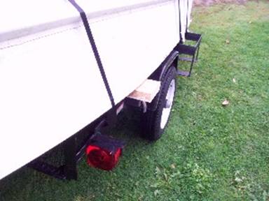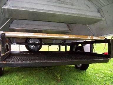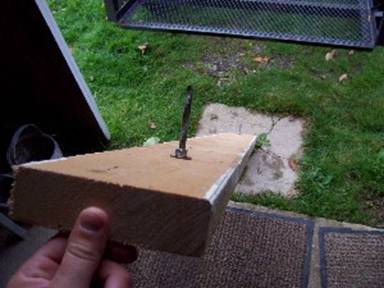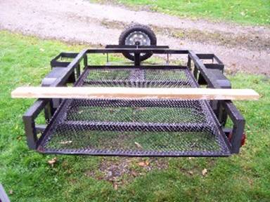I drilled 2 holes in the sides of the trailer. I then laid the piece of wood across and traced the holes. After drilling the wood I put in 2 carriage bolts.