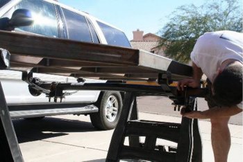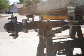 The first thing we had to do was mount the spring perches onto the axle. Be sure to get them on the right side otherwise the camber (bend) in the axle will be wrong, more on that later.