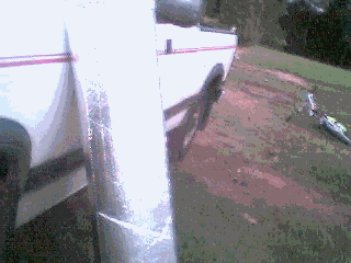 Next was to cover the tent roofs. I cut two pieces for each roof of our camper. To get them to overlap and "tie" them together, I put several pairs of grommet holles down one edge of each piece so that when the "blankets" overlapped I could use a cabletie to hold them together.