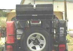 To solve this problem I invested in Garvin Industries Swing Away Tire System. It includes a rear bumper with hitch, a spare tire mount, spots for 5 gallon jerry cans for water and gas, ax and shovel mounting brackets, a place for a Hi-Lift Jack and a top rack for a storage box.