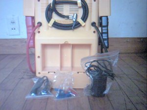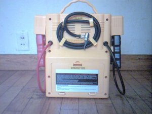 However, the unit I got my wife, does have some extra geegaws, which make me a little more comfortable about her being able to take care of herself. You see 4 switches at the top of the unit. The one on the far right is for main power; the one immediately to the left is for the 2 lights on the unit, which are very bright. Continuing to the left we have the switch for the compressor, which is rated, for 260 psi, the 4th switch is for the 3 accessory sockets. The cables are ALWAYS live, once the main power switch is thrown. I’m thinking about doing some rewiring, after I tear mine apart and possibly hijack a circuit, from Radio Shack.