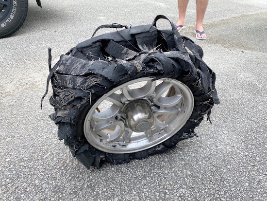 They had a major blowout while driving I95. They were worried about parking on the side of the road. Based on experience, I knew they loaded their trailer lightly, it has tandem wheels, and if they drove slowly, they could drive to the nearest off ramp, and address the issue there. That's what they did, which greatly help calm his wife.
