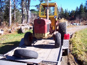 One particular day I was heading for the scrapyard when I found this beauty on the side of the road. I stopped and looked it over and called the phone number. It was just a tractor, but it had a good rugged cab. We can eventually find a bucket and back hoe attachment. Even one not built for it can be adapted. The guy was asking a very reasonable price so I made an offer and he accepted at $250 less than he was asking. A couple days later my g/f and I went and bought it. It fired up and ran fairly well. I stole my bud's big trailer to haul it home on......which is an adventure I don't want to do again with my Tacoma. Next time I steal bigger vehicle to go with trailer. :)