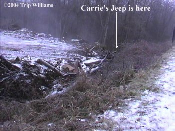 Luckily the Jeep is too far down off the road to be seen from the road by gawkers and thieves... or maybe that's unlucky... if PaleHorse had been knocked unconscious, we WOULD NOT have found her.