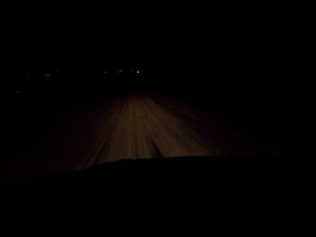 In the above left pic you can see the headlights, but not the vehicle. It was only maybe 200' away in the photo. It doesn't take long to close that distance when two vehicles are moving toward each other at 35MPH.