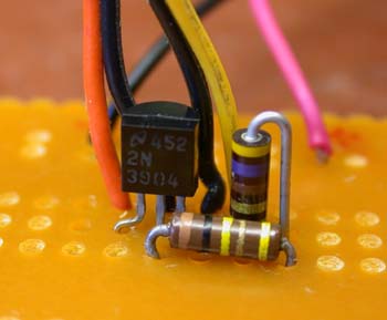 ![]() As you can see, there really isn't much too this. When the Photoresistor is covered, the transistor allows the current to flow through the LED. I mounted the components on a prototype circuit board also from Radio Shack. |