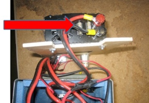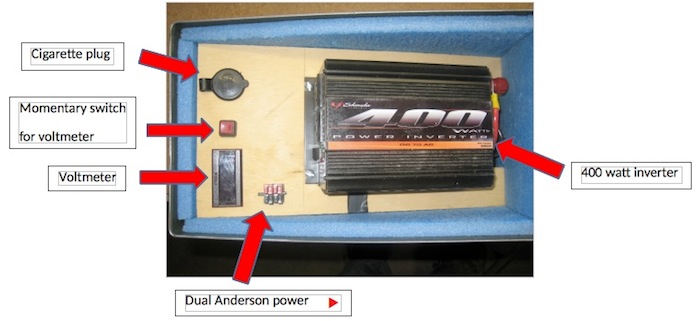 A hole was cut in the plywood to allow the fan to help cool the inverter. The entire assembly comes out of the ammo easily for troubleshooting or repair.