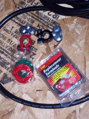 Wal-Mart sells color-coded terminals complete with anticorrosion felts. 4 gauge (413 strand welding leads) fits perfectly.