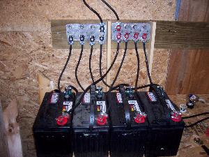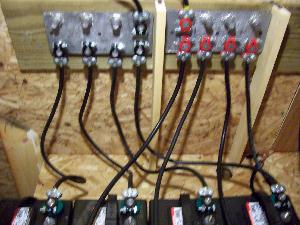 My old battery bank setup was linked together by 8 gauge wire and ring connectors and one battery was linked to another down the line, so on and so forth.