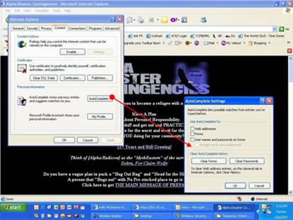 From any browser window select Tools, Internet Options, Content (tab), Personal Information, Autocomplete. On the Autocomplete Settings page ensure NOTHING is checked. Every once in a while you should hit the Clear Forms and Clear Passwords buttons too.