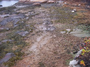 It's only about 25' from the building to the water's edge. After reaching the rock wall, I ran the wire down over the face of it and then buried it in the beach.