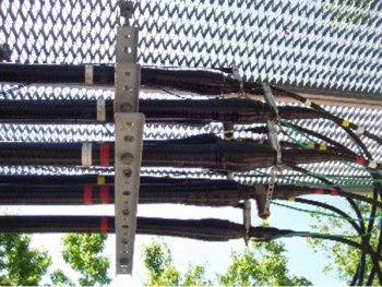 Transmission lineTypically the lines will be 1 5/8” or 2 ¼” diameter. Because of the frequencies that cellular phones use the larger low loss line is necessary to make those 200 and 300 foot runs. They terminate in to ½” low loss line which connect to the antenna and also to the equipment on the ground.