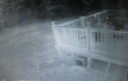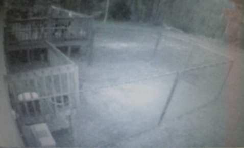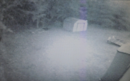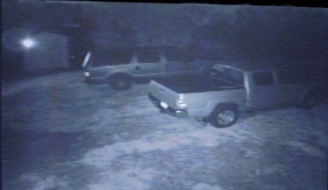 (It's PITCH BLACK outside in all of these pics taken from a few of the Security System's "Zero-Lux" Night-Vision Cameras. What light you "see" in the pictures is from the Infrared spotlights, and it isn't visible at all to the human eye)