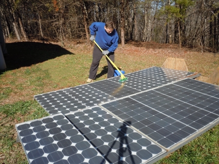 Cleaning the Panels got me EIGHT extra Amps out of the Solar Panels!!! That's over 200 Watts that was just being wasted due to a THIN coat of dirt over the panels!