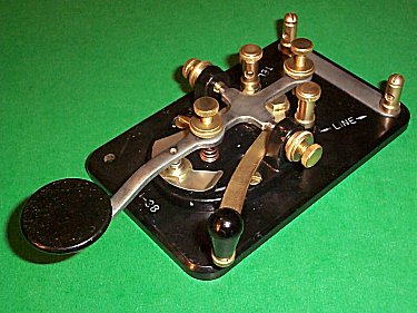Here's a "bug," also called a "semi-automatic key." It is the Vibroplex "Lightning Bug," designed in 1906 or thereabouts and adopted also by the military as the J-39 (this one was made under license by the Lionel Electric Train Company - yes, that Lionel):