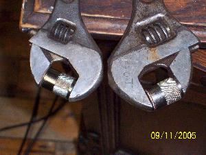 Use the collar from a Pl-259 connector and thread it on or even just the connector itself. That’ll protect the threads. I just happened to have a bunch of collars around so I decided to solder dimes on the end. This will make them dustproof also. I smeared a little flux around the collar’s rim and a little on the time and then used knucklebusters to hold them for soldering. Heated them up with a propane torch and put a little plumbing solder to them.