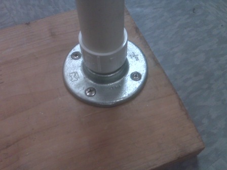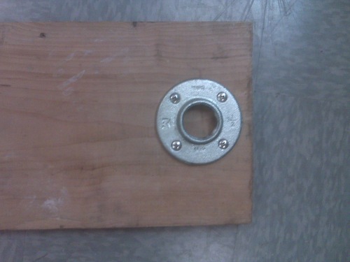 I started off by bolting the floor flange to the very end of the board as pictured: