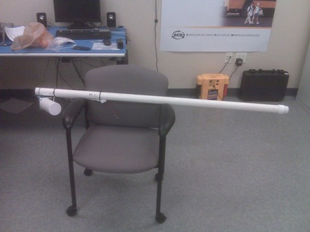 Next, I took the whole mess outside, threaded the remaining sections together, parked my car on the base to add enough weight to keep the whole thing upright, then threaded the top sections into the base as shown: