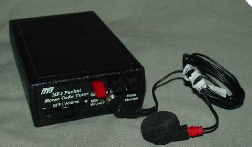 The MFJ-417 is a little black box almost the exact same size as a pack of cigarettes. It has buttons for speed, group size and a third button that's a kind of multi-function "start/stop" button. An on/off/volume control and a headphone jack complete the physical description of this little box. Its programming is described in the instructions that come with it. You can change many variables, not only in what it sends but how it sends it, as well as certain parameters depending on how you want to use it. This is all done by pressing combinations of the three buttons at certain times, or by holding down said combinations while at the same time turning the device on. It takes a 9-volt battery and costs about $70 or so. It is physically identical to its less expensive brother, the MFJ-413. Both are available from the company’s website: