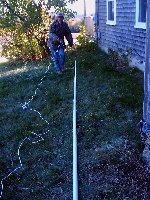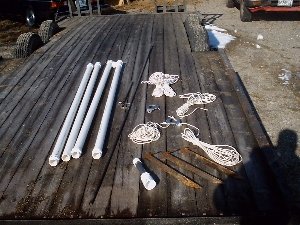 On my recent trip to New York I ran across a ham operator on the Coast Guard base. We got talking about different things and he told me about a ham who’s in a club with him. He told me about making a tower out of PVC pipe. He drew a rough sketch for me so I could get the idea. Looked pretty cool. After I got home from NY I ran the idea by JW and we decided to build one. We added some new ideas to it and started building.
