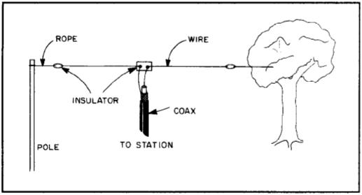 The dipole optimally is one-half wavelength long and suspended at least one-quarter wavelength high. Mathematically, RWN frequency 7.106 MHz yields a half-wavelength of about 66 feet. Thus, each "leg" is 33 feet long and we want to suspend it 33 feet or higher. Now, to assemble the dipole. (Check excellent Rubie articles on soldering and coax.)