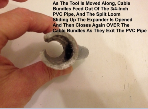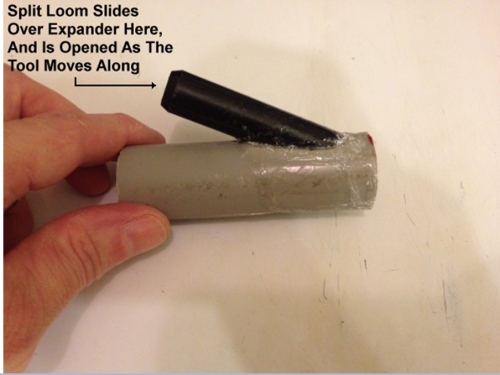 I just made my own "Split Loom Threading Tool" today. It only took about 20 minutes of casual work in my workshop. I made it out of a piece of 3/4-Inch PVC Conduit, and the Center of a "100 Pack DVD Case's Center Spindle". It's certainly not pretty, that's for sure, but it Works GREAT (and it really didn't need to be pretty, it simply needed to WORK)! Job will be done in no time now! In fact, I should be able to do 600 Feet in 30 minutes tomorrow, when I start on it again, whereas it took me 2 hours today to try to run MAYBE 50 feet by hand.