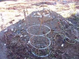 Once the hole was empty I put the tube in and started backfilling it. The tube is higher out of the ground than I wanted because some of the dirt fell back in the hole. It's not a big deal. This tower might sink a few inches, but will stop when it hits the ledge.