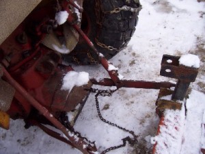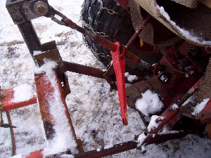 I cut all of the workings out of it leaving only the frame. I then used thick flat plate and made bolt points for the hitch to attach too. I used the torch to cut holes for the bolts. The bolts are grade 8. A friend gave me a piece that I made in to the attachment for the top link to hook to.