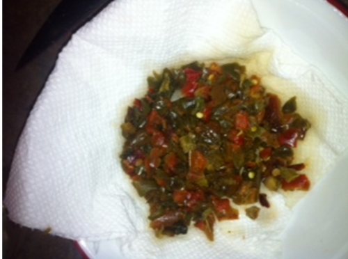 I drained the peppers in a strainer, then in a paper towel, with a quick squeeze to get most of the water out. They looked and tasted like peppers.