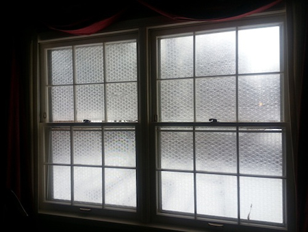 Let me introduce you to bubble wrap. You know, that stuff normally used for packing delicate items when moving? It's also awesome window insulation.