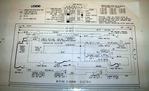 With the cover removed from the back of the control panel, I spotted the wiring diagram. Be sure to put it back when you're done! Most appliances have the diagrams hidden somewhere inside the cabinet.