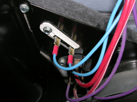 The schematic shows two blue wires going to the first thermal fuse I want to check. I selected this one as it's in the motor circuit.