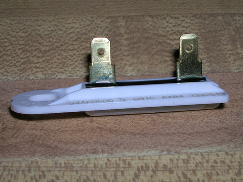 See the white thingy. That's it. It measures the exhaust temperature of the dryer hose. Once it fails, it doesn't reset. Low airflow (clogged vent line, blower motor blades, etc) can cause this. They also "just fail" after years of use. Mine had lint built up on the side exposed to the airflow. Might have contributed to the failure. I do routinely check the exhaust flow on the outside vent.