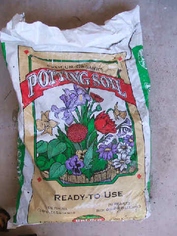 The dirt was standard organic potting soil, 2 bags of 1 cubic ft each. I used about 1.5 bags initially, putting a small amount on the floor of the container before putting in the rootball of the tree. After filling it, I watered the tree with about 2 gallons of water. A lot spilled out the side of the container, because the soil was so dry it couldn't prevent the water from passing before it was absorbed.