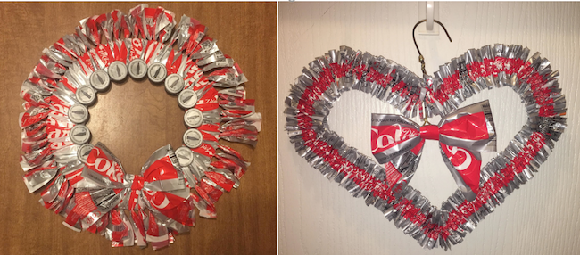 USE WHAT IS ONHAND! I made the most money from old pizza boxes and Diet Coke wrappers and caps, seriously. I used a hot glue gun, but cheap white school glue would have worked just as well. It took me about half an hour to turn them into small door wreaths, and I sold them for $15, plus about $6 for shipping. One lady paid $25 for the heart wreath, and paid $45 for expedited shipping! No kidding...