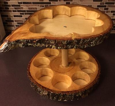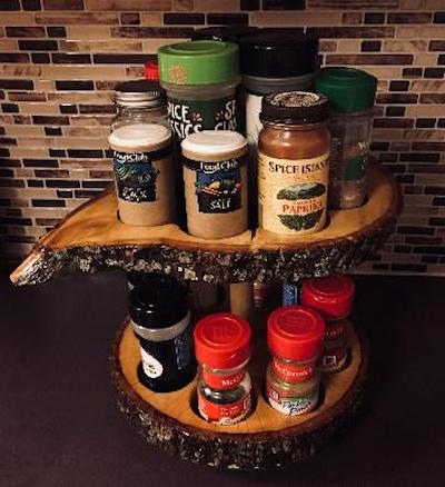 Like shipping, this isn't a big deal for local advertising. People will see the item by chance rather than by directly searching for it, so just call it what it is, like "Live Edge Lazy Susan Spice Rack."