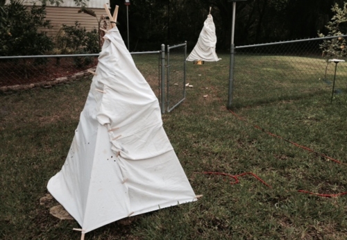 I made a simple teepee using three pieces of scrap wood and a tied wrap at the top.