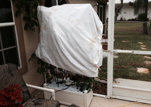 I still have a tomato plant producing maters, so I covered it too. I need to add a little more protection around the base, but you get the idea.