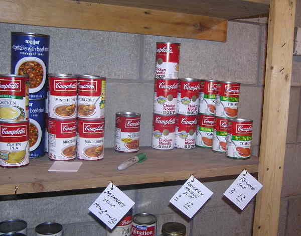 A supporting practice for Min/Max inventory is to use a generic shopping list. This shopping list pre-lists the items you store. You simply write the numbers required to bring the counts back to Max. We arranged our list in the order that items show up aisle-by-aisle in our local store. Items that are not on sale are not purchased unless the count is below Min. Frequent buys that are driven by Min cause us to increase the Max.