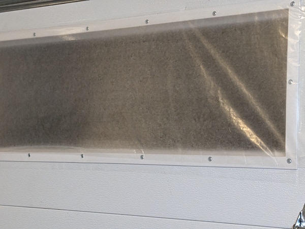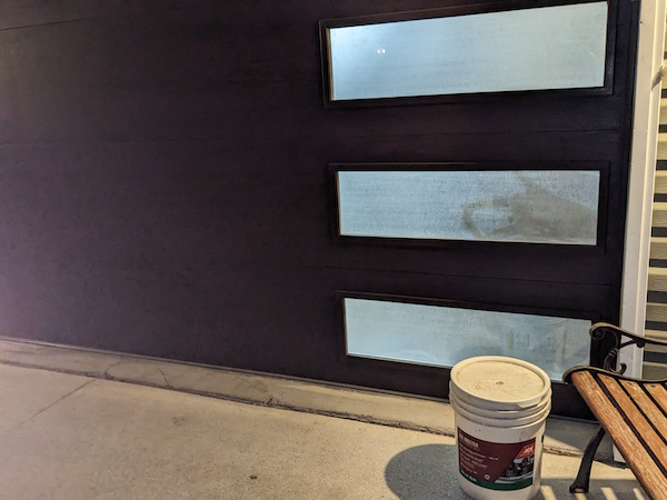 Last fall I had an insulated garage door installed. My wife wanted glass windows on one side. We agreed to see how it looked after it was installed, she wanted clear glass and I wanted at least some sort of frosted glass. After it was installed my wife agreed that we should make the glass more difficult to see thru; ideas included having an artist neighbor paint the windows with nature scenes, painting the windows white our selves, etching them ourselves, making stained glass inserts. Our favorite is the stained glass inserts or having nature scenes painted on the windows, both are cost prohibitive right now. I did think about etching the glass myself but I am not sure if the etching acid will ruin the seals on the double pane windows in the garage door.