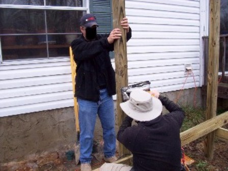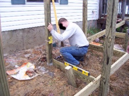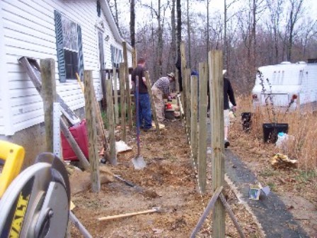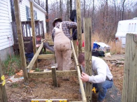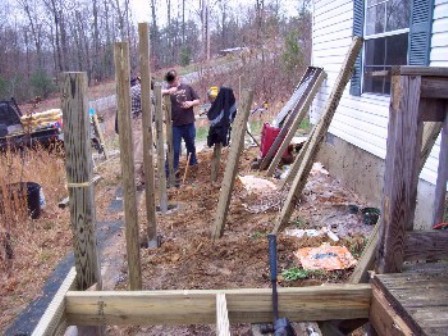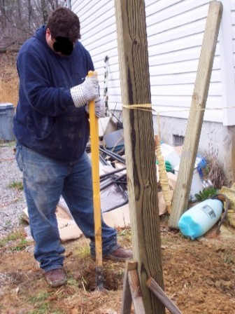 The ramp design was planned out and was designed to be big enough for an ambulance cot to be able to easily use. While John and Blackhawk ran to the lumber yard, the rest of us dug the holes for the 4x4 posts.