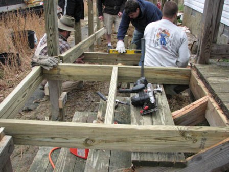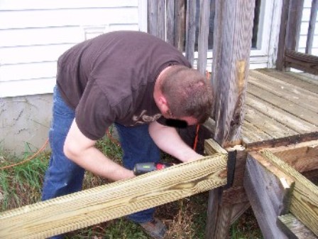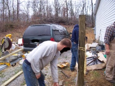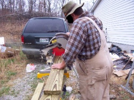 Turchin wins the “worked like a maggot award”. He and Raidyn took on the doorway project while we worked on the ramp. He then stayed to help with the ramp. Unfortunately due to prior obligations, Raidyn and Duckman had to leave mid-afternoon. He also wins the “most amount of tools in the smallest vehicle” award. He arrived in a Subaru Outback and commenced to unload a wood shop. He had a compound miter saw WITH table, skill saw, hand tools, stuff, more stuff and even a weed whacker. The rest of us stood there in disbelief seeing all the stuff he had packed in that thing.